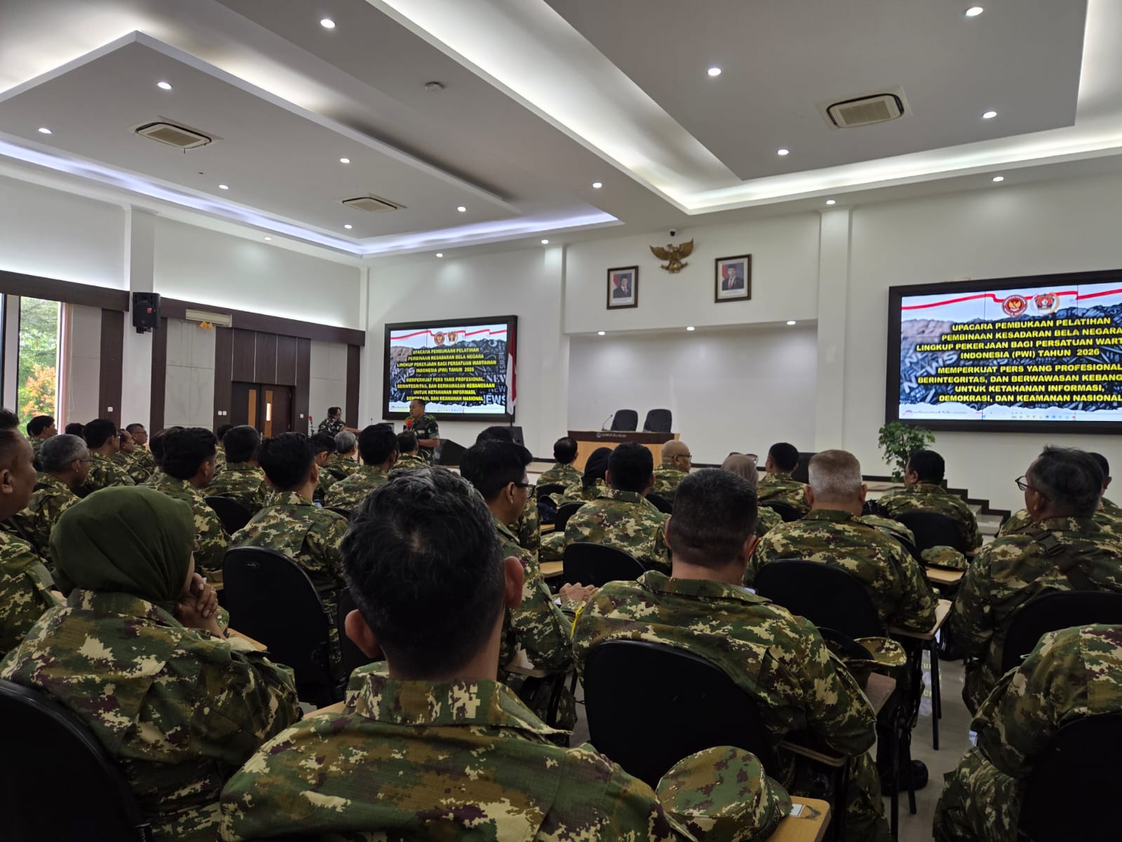 Sebanyak 160 wartawan anggota Persatuan Wartawan Indonesia mengikuti program Retret Bela Negara di Pusat Kompetensi Bela Negara, Desa Cibodas, Kecamatan Rumpin, Kabupaten Bogor, Kamis (29/1/2026).