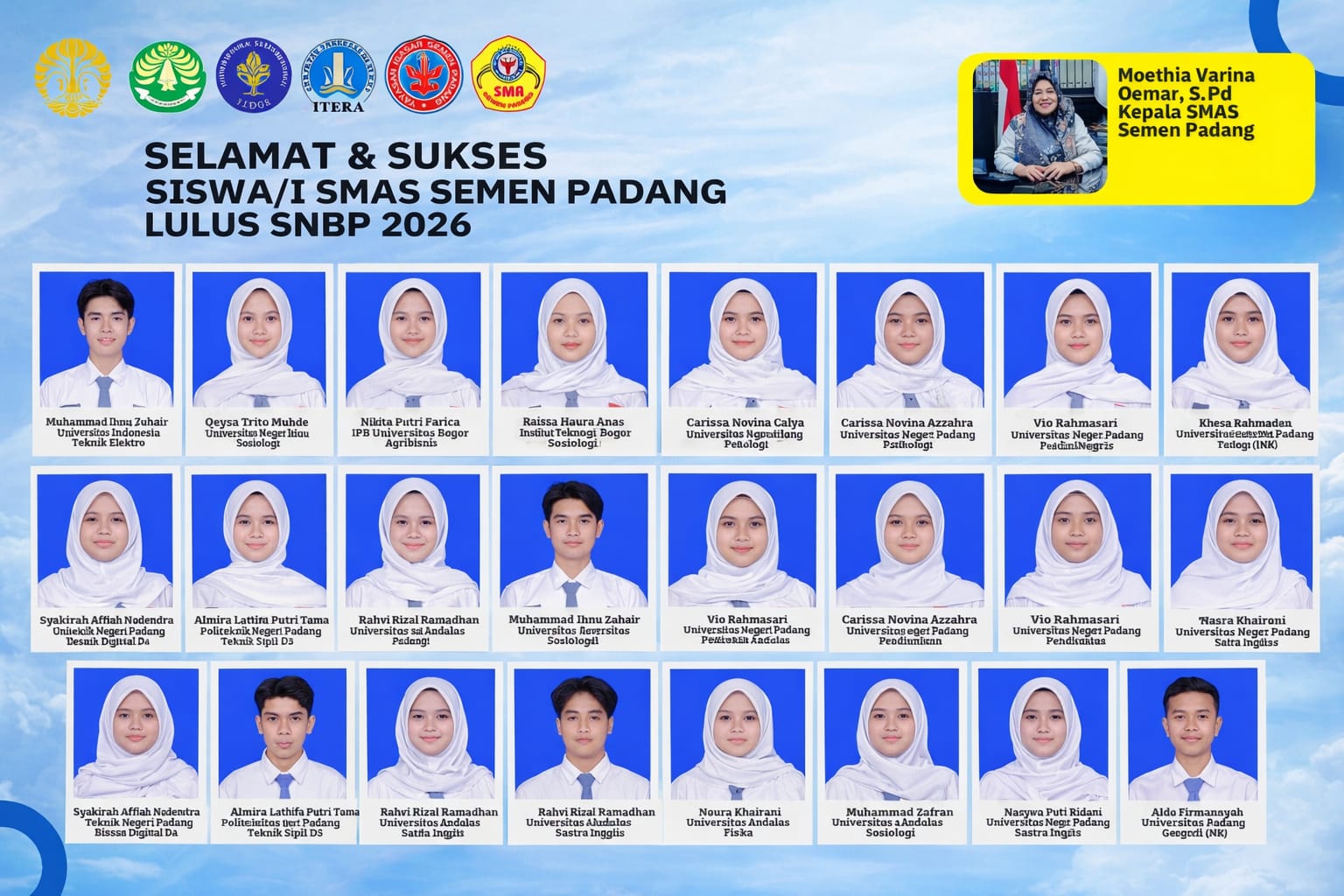 SMAS Semen Padang mencatat capaian membanggakan pada Seleksi Nasional Berdasarkan Prestasi (SNBP) 2026. Sebanyak 22 siswa kelas XII dinyatakan lulus di berbagai perguruan tinggi negeri di Indonesia.