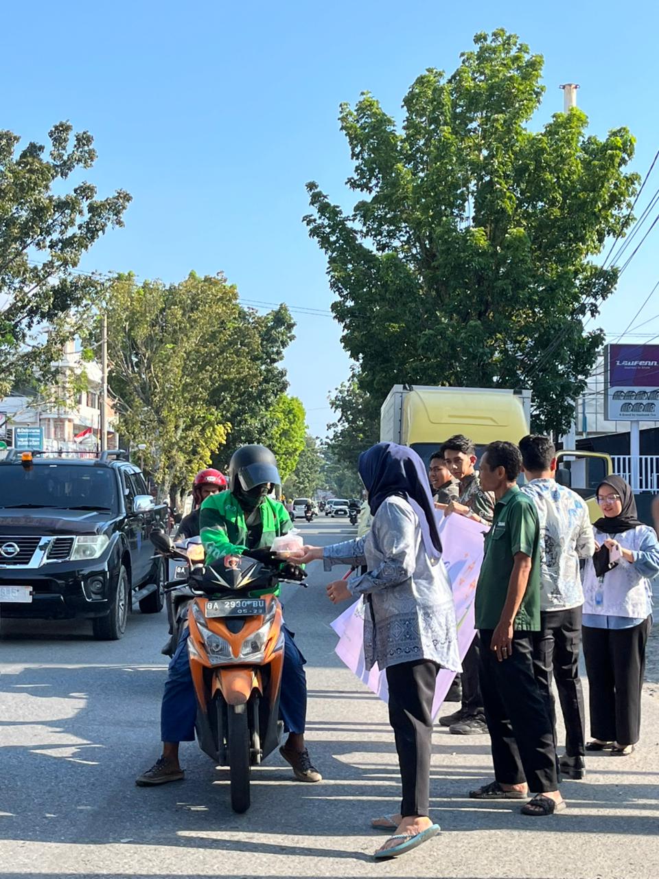 BPJS Ketenagakerjaan Cabang Padang menggelar aksi sosial dengan membagikan takjil gratis kepada masyarakat di depan kantor mereka di Jalan Veteran, Kamis (12/3/2026).