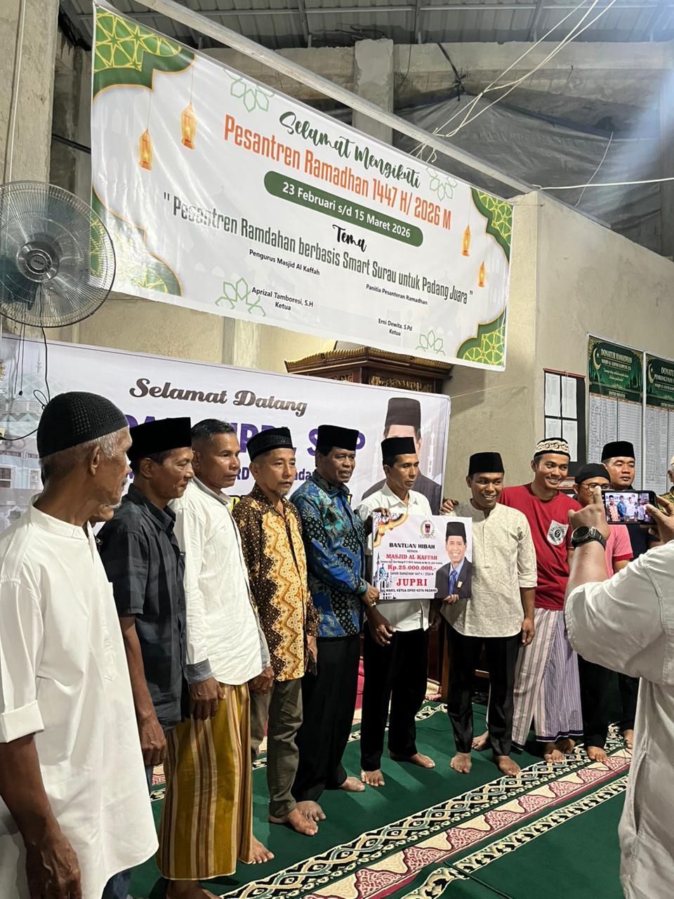 Wakil Ketua DPRD Kota Padang Jupri melaksanakan kegiatan Safari Ramadan 1447H/2026 M di Masjid Al Kafffah Kampung Jua Nan XX Lubuk Begalung, Kota Padang, Minggu (8/3/2026).