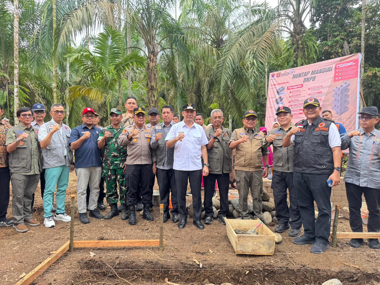 Pembangunan huntap mandiri di Kabupaten Limapuluh Kota dimulai di Jorong Lubuk Aur Nagari Koto Tinggi Kecamatan Gunuang Omeh, Rabu (15/4/2026), ditandai dengan peletakan batu pertama oleh Sekretaris Utama BNPB Rustian bersama Bupati Limapuluh Kota Safni Sikumbang.