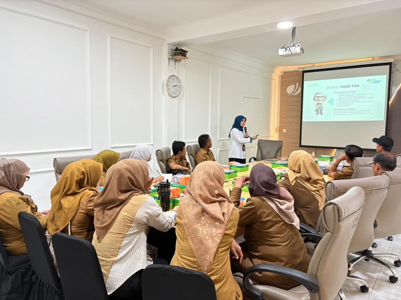 Kegiatan tersebut bertujuan memberikan edukasi terkait pentingnya jaminan sosial ketenagakerjaan, khususnya manfaat Jaminan Pensiun bagi pekerja saat memasuki usia tidak produktif.