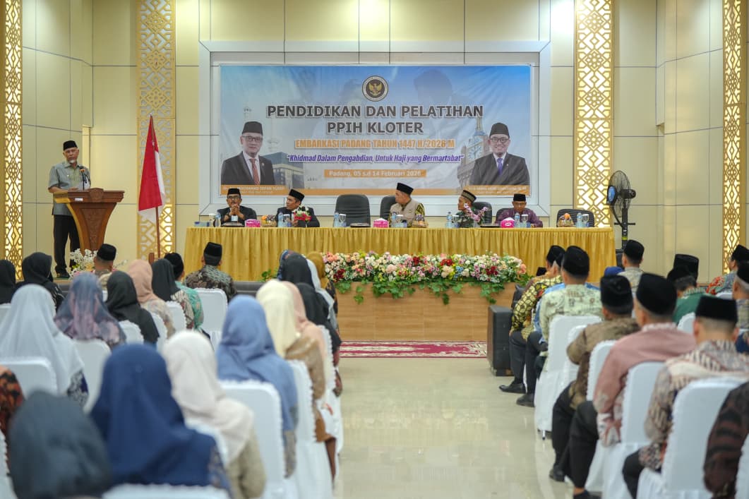 Kualitas pelayanan jemaah haji sangat ditentukan kesiapan petugas di lapangan. Karena itu, Gubernur Sumatera Barat Mahyeldi meminta petugas mengutamakan keikhlasan, kedisiplinan, dan empati saat membuka Pendidikan dan Pelatihan Petugas Penyelenggara Ibadah Haji (PPIH) Embarkasi Sumbar Tahun 1447 H/2026 M, di Aula Asrama Haji Embarkasi Tabing, Kamis (5/2/2026).