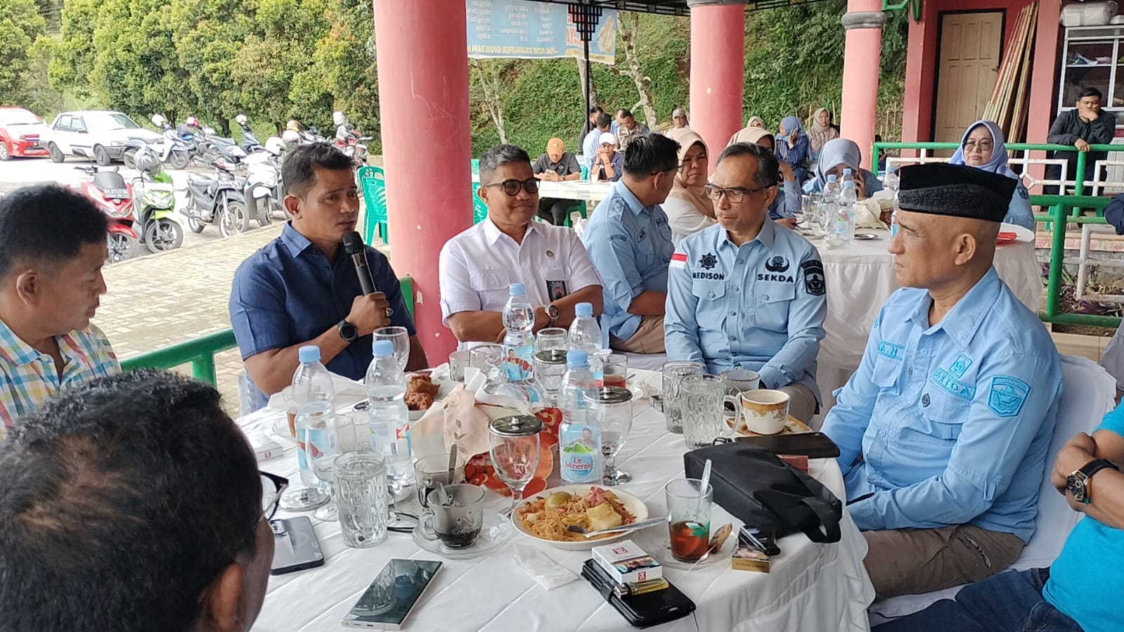 Bupati Solok Jon Firman Pandu memaparkan sejumlah capaian pembangunan dan arah kebijakan daerah dalam kegiatan Coffee Morning Indonesia bersama wartawan media cetak, daring, dan elektronik di Arosuka, Kamis (23/10/2025).