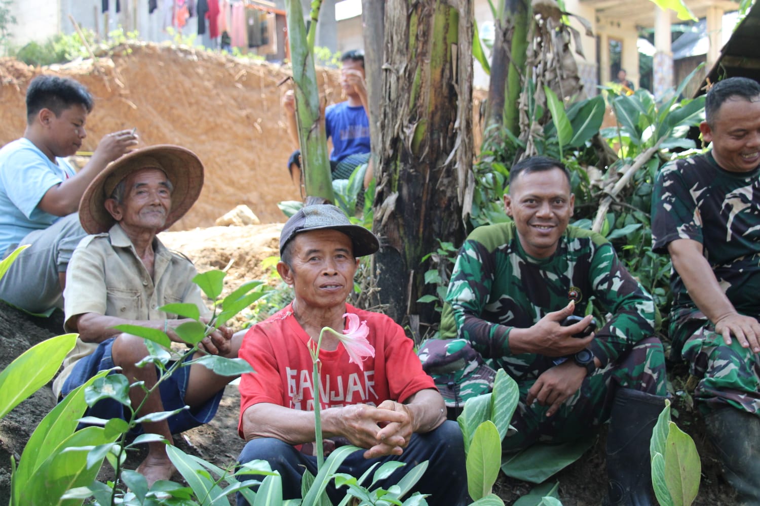 Momen rehat tidak sekadar dimanfaatkan untuk melepas lelah, tetapi juga menjadi ruang kebersamaan antara TNI dan warga.