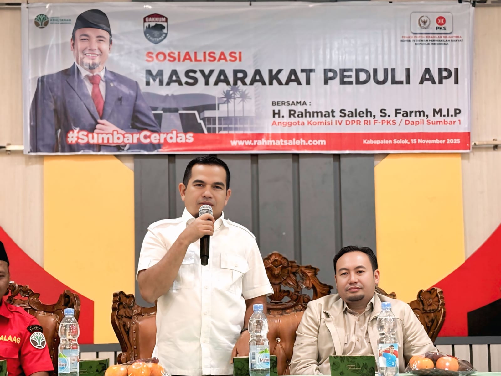 Kesadaran publik untuk mengelola lahan secara bijak kembali menjadi sorotan melalui Sosialisasi Masyarakat Peduli Api yang digelar Sabtu (15/11/2025) di Gedung Serba Guna Islamic Center Koto Baru. Kegiatan ini diinisiasi Anggota Komisi IV DPR-RI Fraksi PKS Rahmat Saleh dengan menghadirkan narasumber dari Balai Pengendalian Perubahan Iklim dan Kebakaran Hutan dan Lahan (Dalkarhut) Wilayah Sumatera.