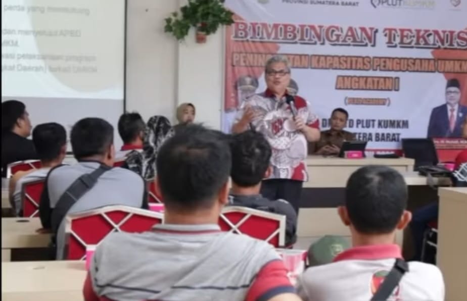 Ketua DPRD Provinsi Sumatera Barat Muhidi membuka kegiatan Bimbingan Teknis (Bimtek) peningkatan kapasitas pelaku usaha mikro, kecil, dan menengah (UMKM), di UPTD PLUT KUMKM Sumatera Barat, Senin (6/4/2026).