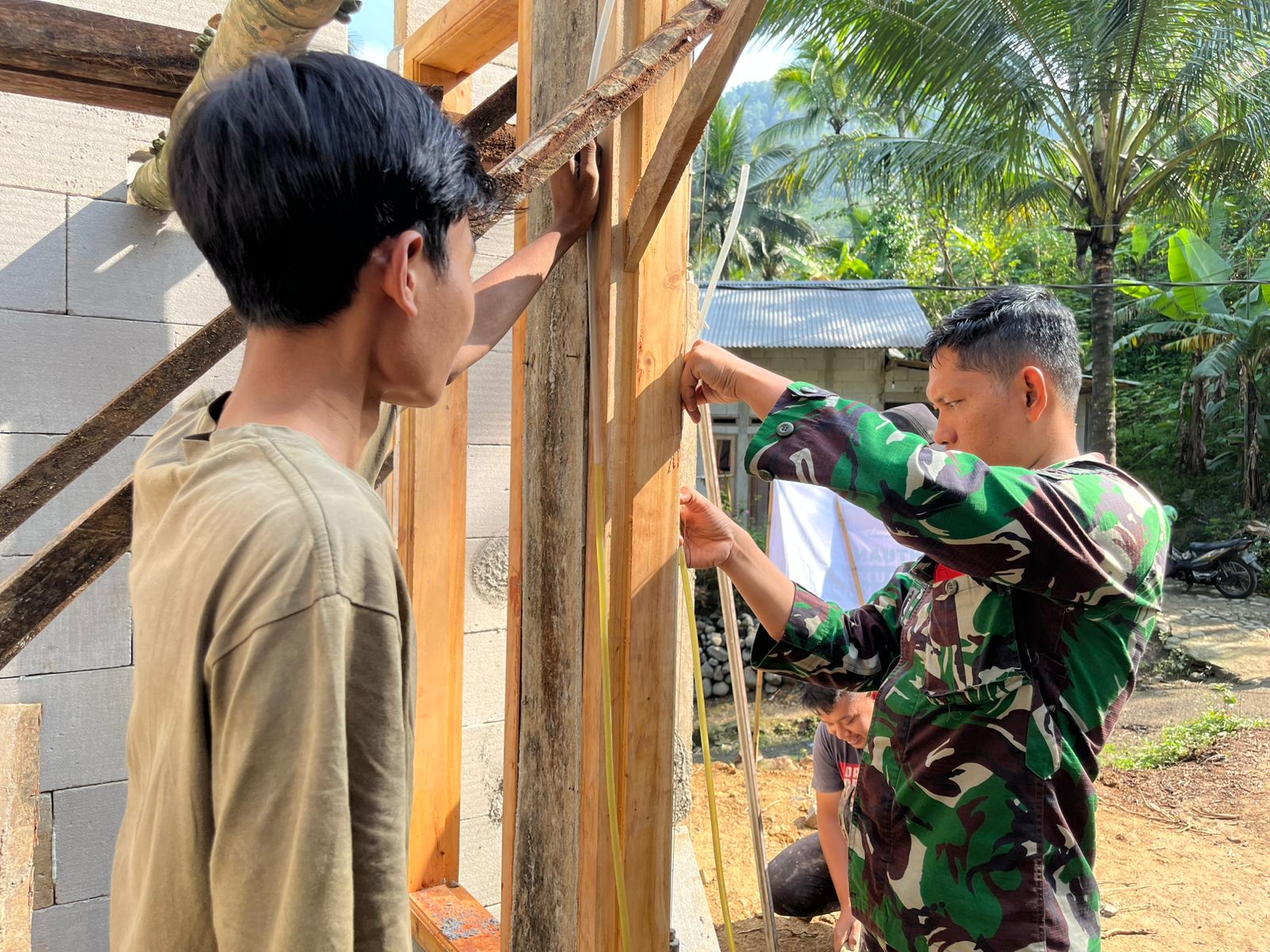 Program TMMD Reguler ke-128 Kodim 0702/Purbalingga menghadirkan perubahan bagi warga Desa Krangean Kecamatan Kertanegara, salah satunya keluarga Misdi yang menerima bantuan Rumah Tidak Layak Huni, Kamis (30/1/2026).