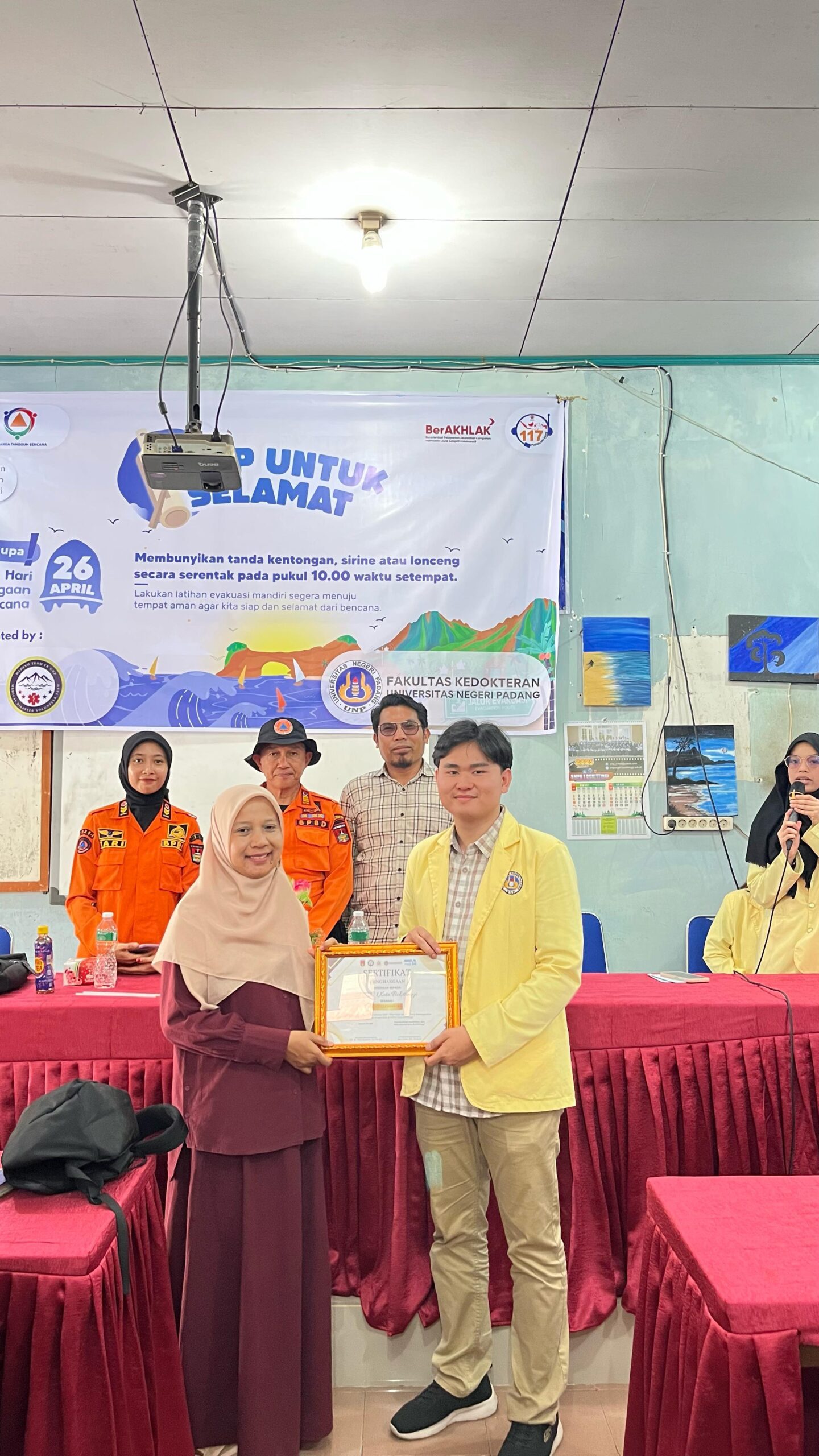 Fakultas Kedokteran Universitas Negeri Padang (FK UNP) kembali menorehkan prestasi membanggakan dalam peringatan Hari Kesiapsiagaan Bencana (HKB) 2025 yang dilaksanakan serentak pada Jumat (26/4/2025). FK UNP menerima Piagam Penghargaan atas partisipasi aktif dalam latihan simulasi evakuasi bencana nasional serta edukasi kebencanaan yang digelar secara serentak di seluruh Indonesia.