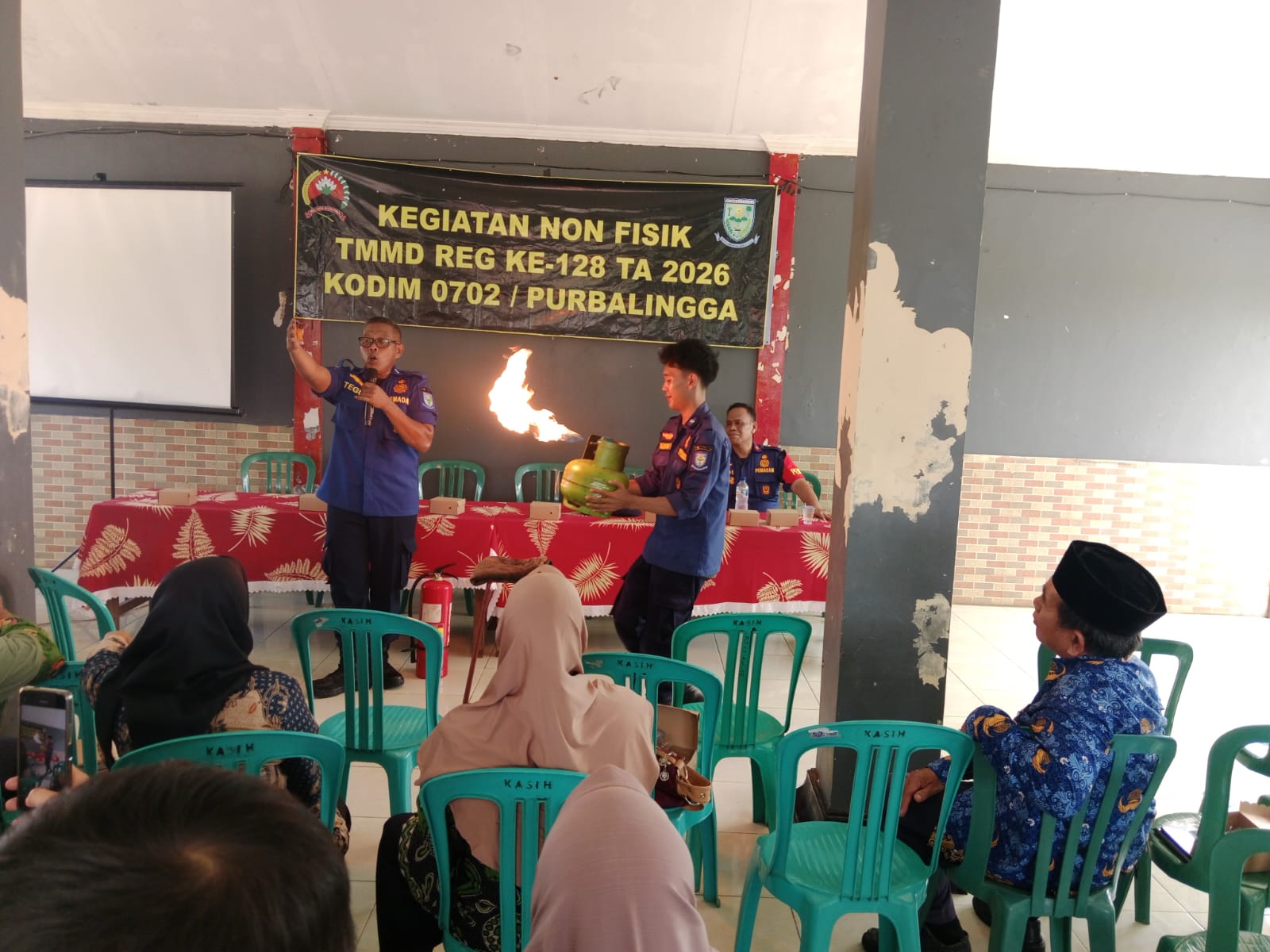Salah satunya melalui kegiatan penyuluhan pemadaman kebakaran yang digelar di Balai Desa Kasih, Kecamatan Kertanegara, Kabupaten Purbalingga, Senin (27/4/2026).
