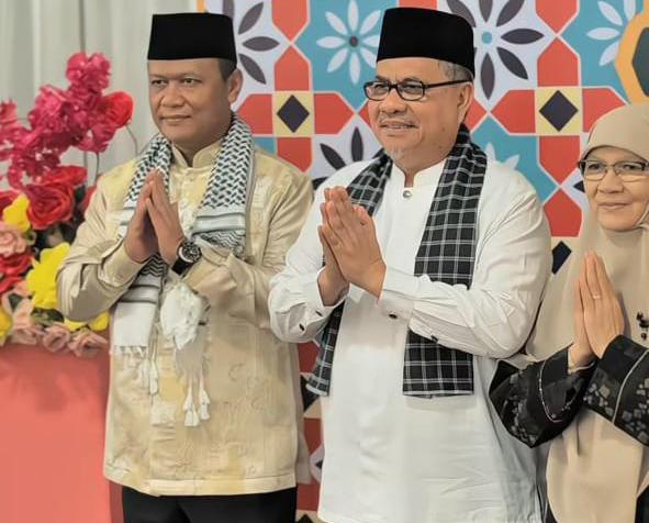 Seusai menunaikan Salat Idulfitri di Lapangan Kantor Gubernur Sumatera Barat, unsur Forum Koordinasi Pimpinan Daerah (Forkopimda) melanjutkan agenda dengan bersilaturahmi ke rumah dinas Ketua DPRD Sumbar Muhidi, Sabtu (21/3/2026).