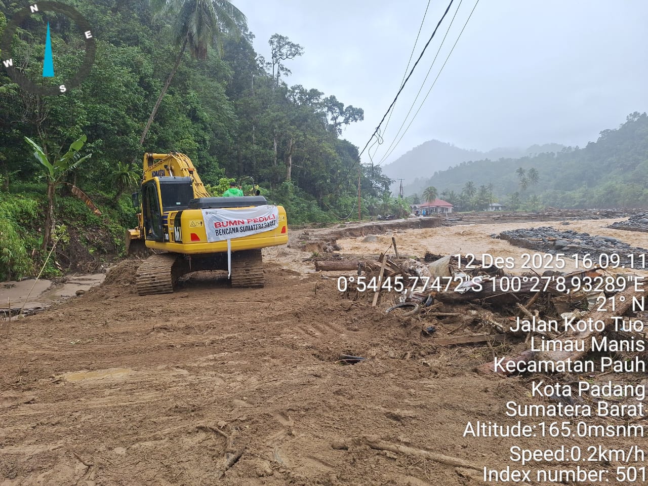 Akses jalan menuju Batu Busuk, Kelurahan Lambung Bukit, Kecamatan Pauh, Kota Padang, kembali dapat dilalui setelah sempat terputus akibat banjir bandang. Jalur tersebut mulai terbuka pada Jumat (12/12/2025) sore berkat pengerahan alat berat oleh tim Semen Padang Peduli.