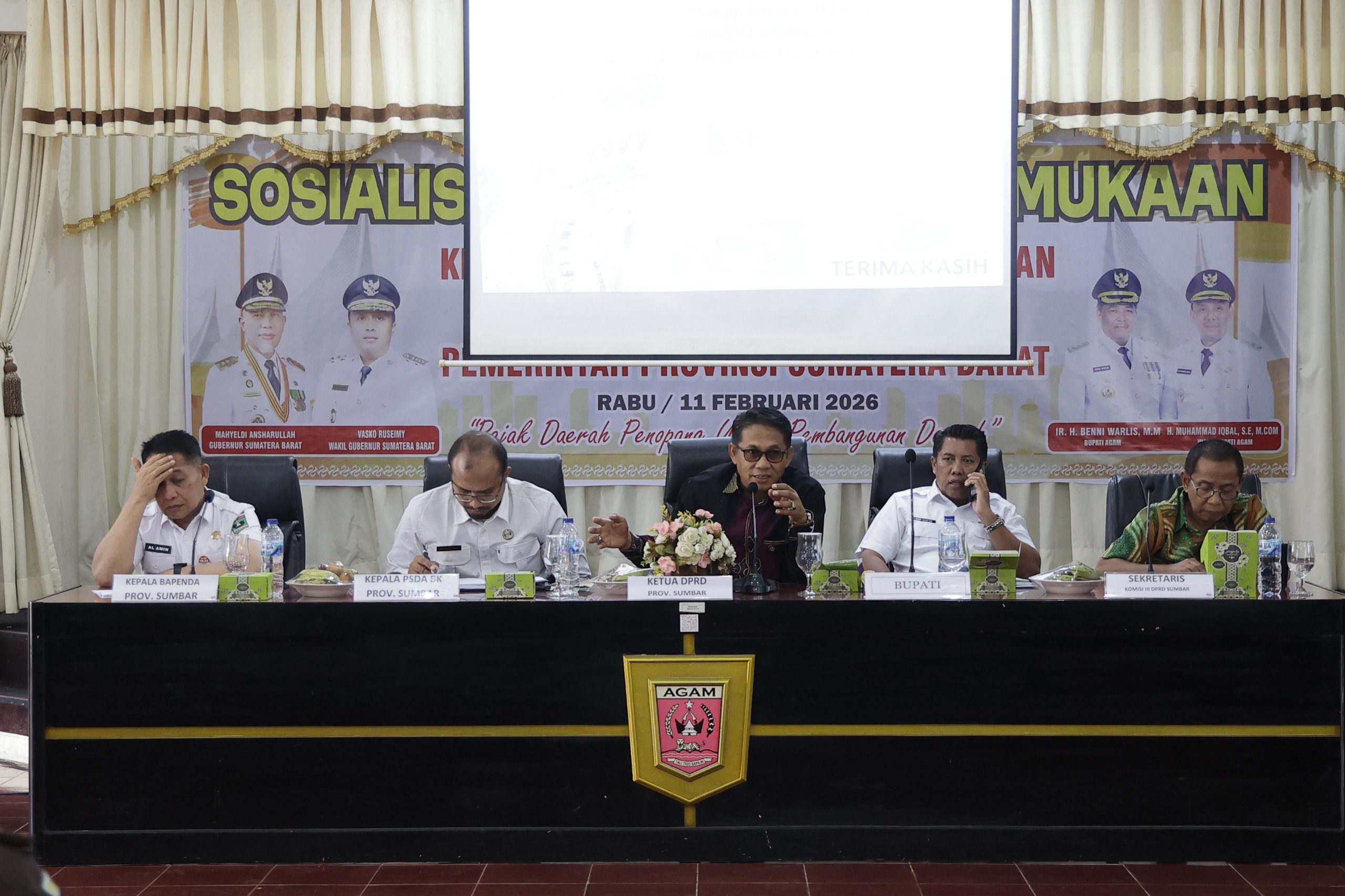 Setelah sebelumnya digelar di Pasaman Barat dan Pesisir Selatan, sosialisasi berlanjut di Kabupaten Agam, Selasa (11/2/2026). Kegiatan tersebut dihadiri Wakil Ketua DPRD Sumbar Evi Yandri Rajo Budiman serta Kepala Badan Pendapatan Daerah Sumbar Al Amin.