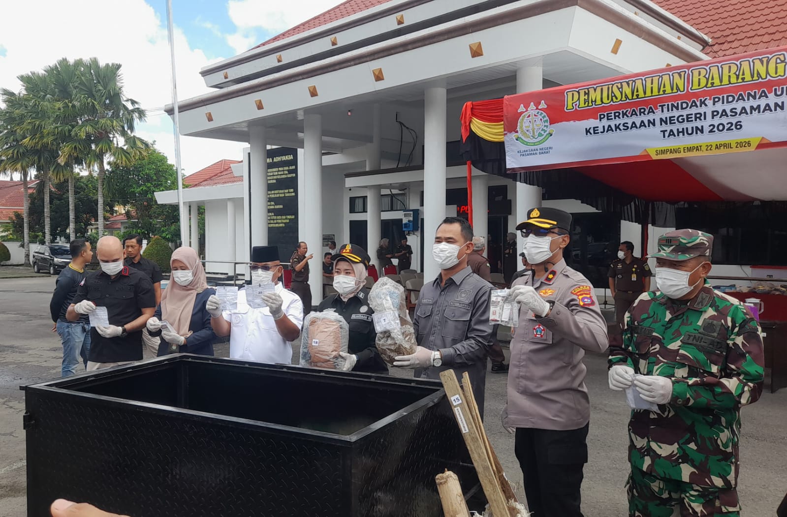 Kejaksaan Negeri (Kejari) Pasaman Barat memusnahkan barang bukti dari sejumlah perkara yang telah berkekuatan hukum tetap, di halaman kantor setempat, Rabu (22/4/2026).