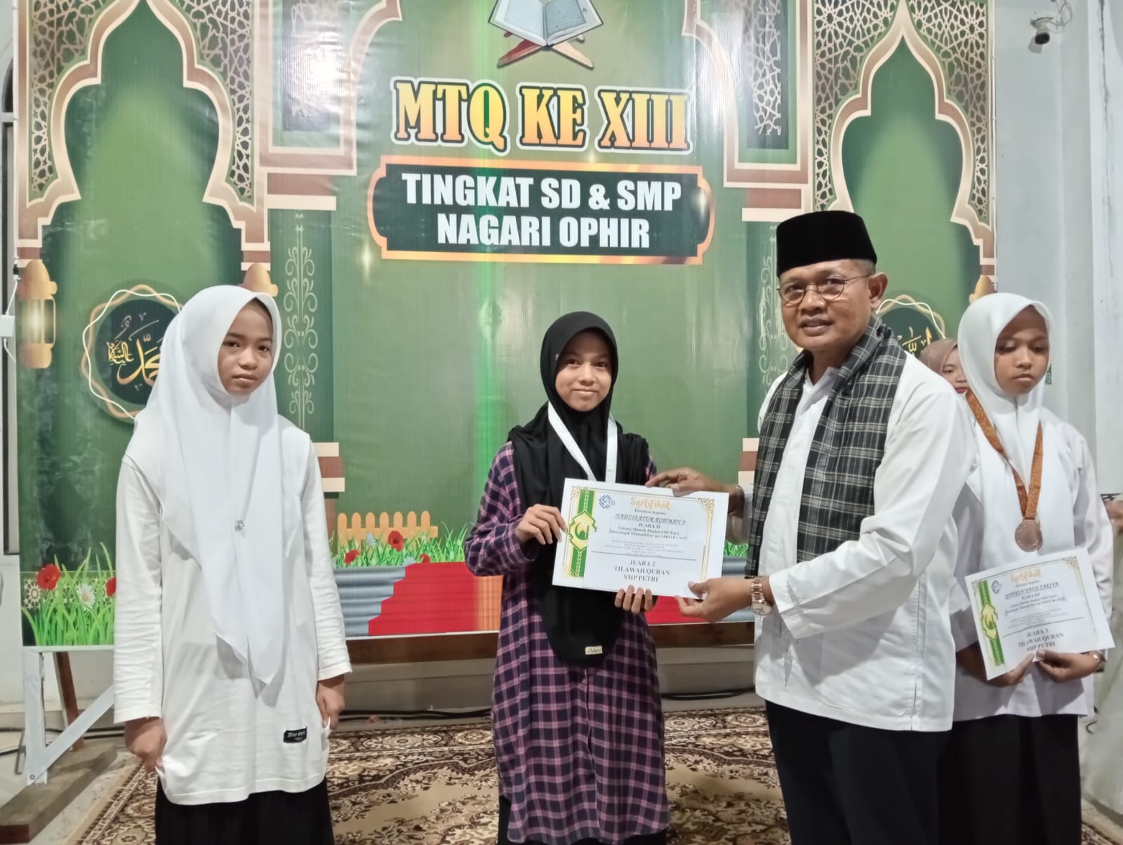 “Saya sangat mengapresiasi seluruh peserta yang telah menampilkan kemampuan terbaiknya di ajang MTQ XIII tingkat SD dan SMP se-Nagari Ophir,” katanya.