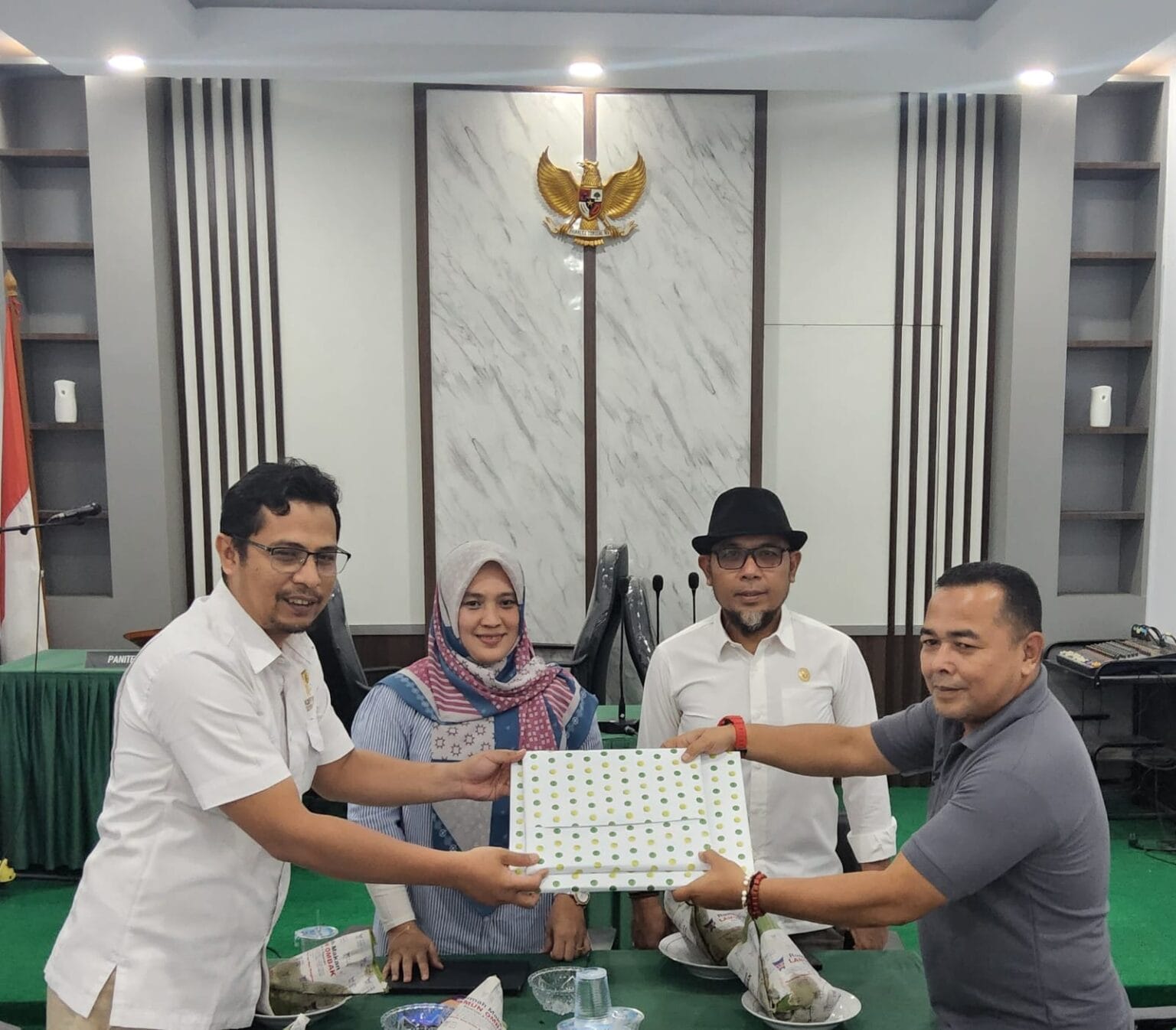 Semakin surprise setelah Ketua KI menyerahkan cendera mata yang disiapkan oleh Komisioner KI Sumbar Tanti Endang Lestari.