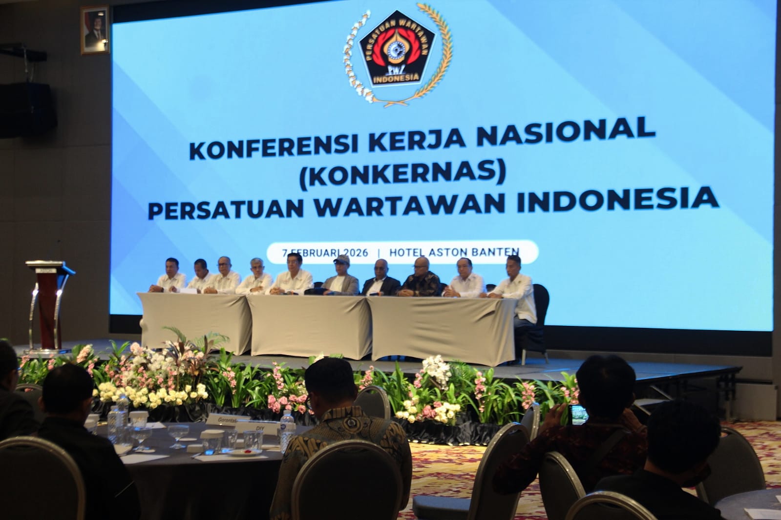 Surat dukungan gubernur diserahkan langsung Ketua PWI Lampung Wirahadikusumah kepada Akhmad Munir saat Konferensi Kerja Nasional (Konkernas) PWI di Hotel Aston, Banten, Sabtu (7/2/2026).