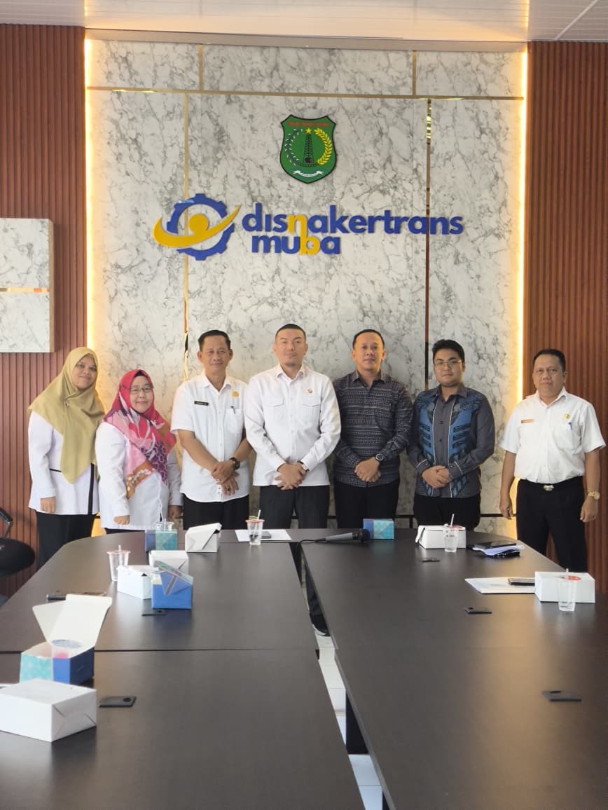 Sekretaris Disnakertrans Muba Juanda menyambut rombongan dan memaparkan sejumlah program unggulan, mulai dari kewajiban pelaporan lowongan kerja, pelatihan vokasi migas, magang ke Jepang, hingga Unit Layanan Disabilitas.