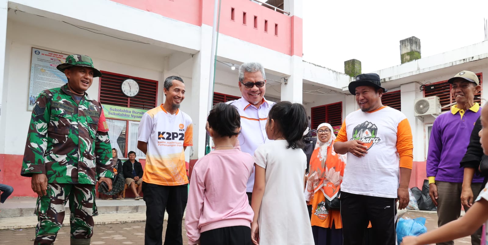 Selain meninjau kondisi lapangan, Muhidi juga menyerahkan bantuan berupa sarapan pagi dan paket sembako bagi warga terdampak.