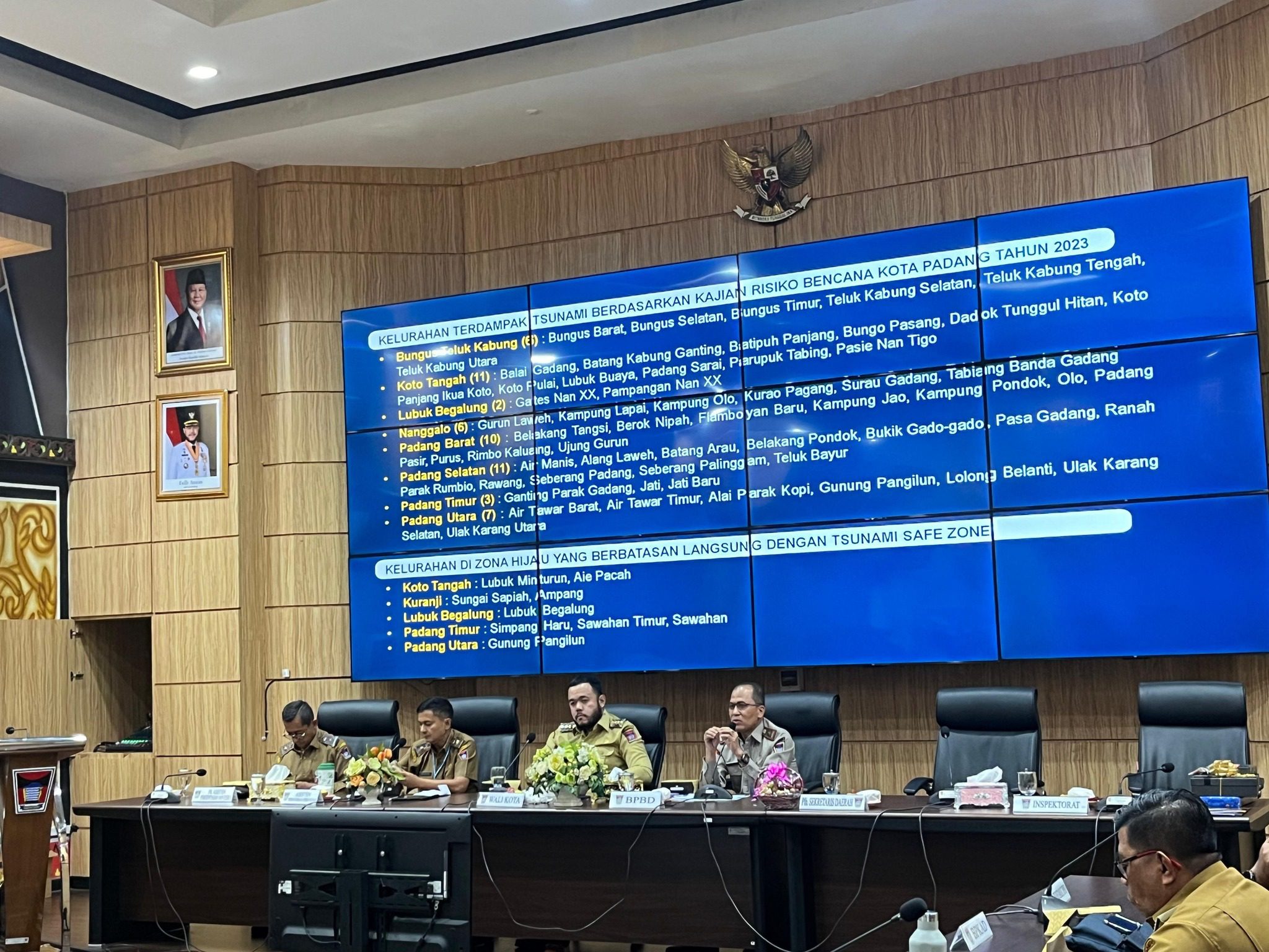Wali Kota Padang Fadly Amran mengimbau masyarakat untuk selalu siaga dan segera menyelamatkan diri saat mendengar sirene Early Warning System (EWS) gempa dan tsunami. Imbauan tersebut disampaikan dalam rapat bersama Badan Penanggulangan Bencana Daerah (BPBD) Kota Padang, di Ruang Abu Bakar Ja’ar, Balai Kota Aie Pacah, Senin (14/7/2025).