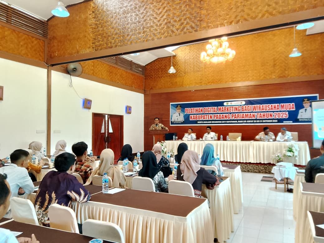 Dalam rangka meningkatkan kompetensi dan daya saing generasi muda dalam menghadapi tantangan era digital, Pemerintah Kabupaten Padang Pariaman, melalui Dinas Pariwisata, Pemuda, dan Olahraga (Dispasora), menggelar Pelatihan Digital Marketing bagi Wirausaha Muda Tahun 2025, di Dempo Anailand, Kecamatan 2 x 11 Kayu Tanam.