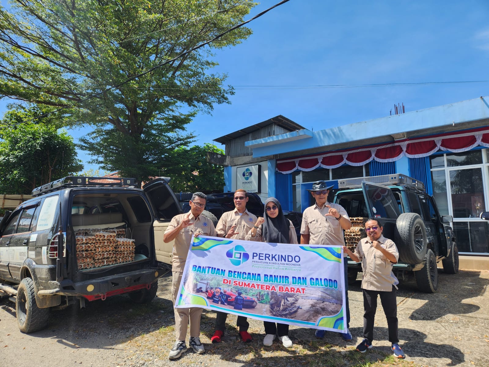 Persatuan Konsultan Indonesia (PERKINDO) melalui DPD PERKINDO Provinsi Sumatera Barat mulai menyalurkan bantuan untuk warga terdampak banjir bandang yang melanda Kota Padang, Kabupaten Agam, dan Kabupaten Padang Pariaman. Bantuan tahap awal ini berupa paket sembako dan peralatan manual untuk membuka akses jalan yang tertutup material banjir.