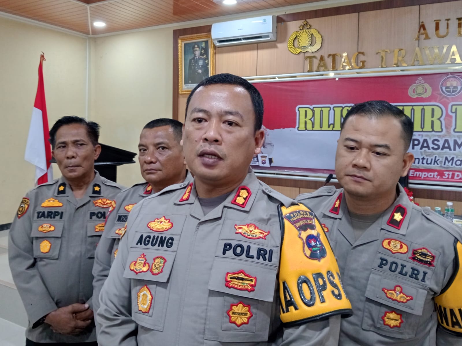 Kepolisian Resort (Polres) Pasaman Barat, Sumatera Barat (Sumbar), menggelar press release pencapaian sepanjang tahun 2025 di Aula Tatag Trawang Tungga Mapolres setempat, Rabu (31/12/2025).