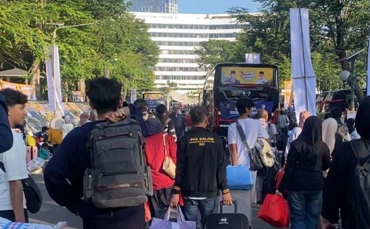 Rasa rindu terhadap kampung halaman mengantar ratusan perantau Minangkabau kembali ke ranah Minang melalui Program Pulang Basamo 2026. Sejak pagi, para peserta sudah memadati kawasan Gerbang Pancasila Gedung DPR RI Jakarta, Minggu (15/3/2026), dengan tas dan koper yang siap dibawa pulang ke kampung halaman.