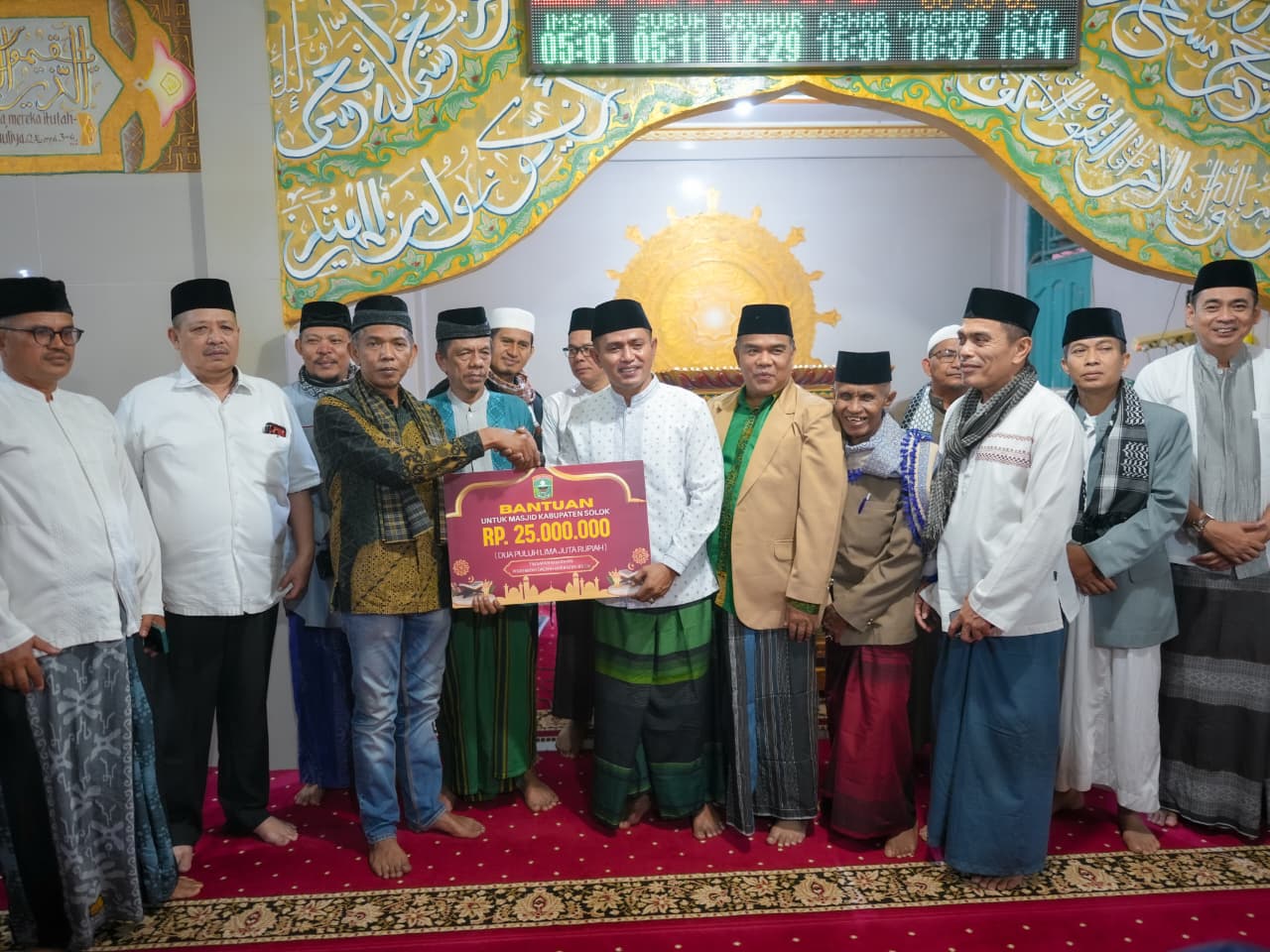 Pada kesempatan itu, Jon Firman Pandu menyerahkan bantuan Rp25 juta kepada pengurus Masjid Daruttaqwa sebagai bentuk dukungan pemerintah daerah terhadap sarana dan prasarana rumah ibadah.