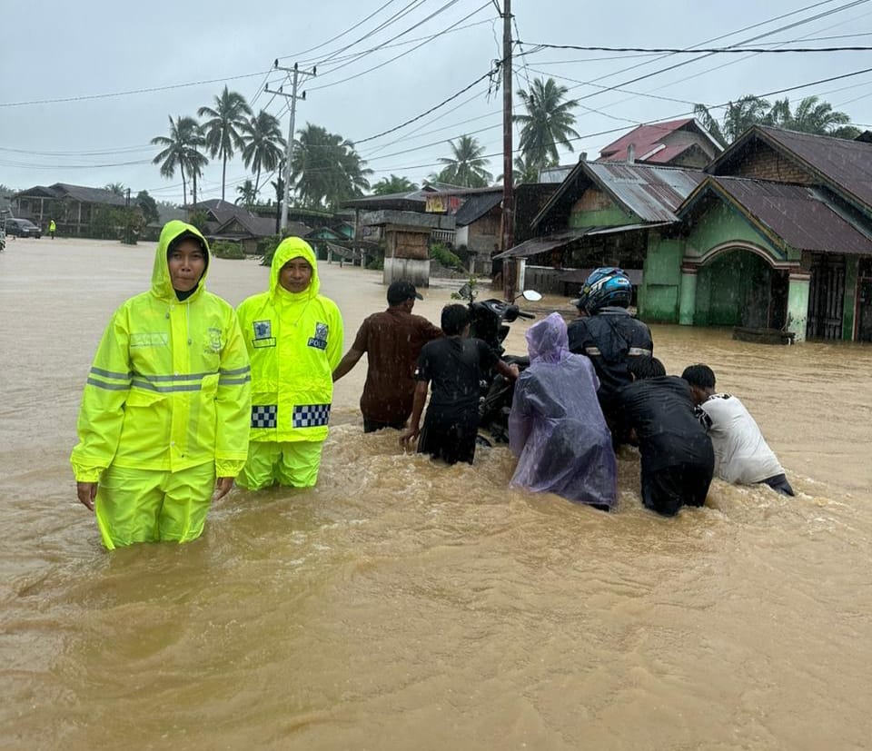 Satuan Polisi Lalu Lintas Polres Pasaman Barat menyiagakan personel di sejumlah titik terdampak banjir dan tanah longsor untuk memastikan kelancaran dan keselamatan arus kendaraan di tengah kondisi cuaca ekstrem.