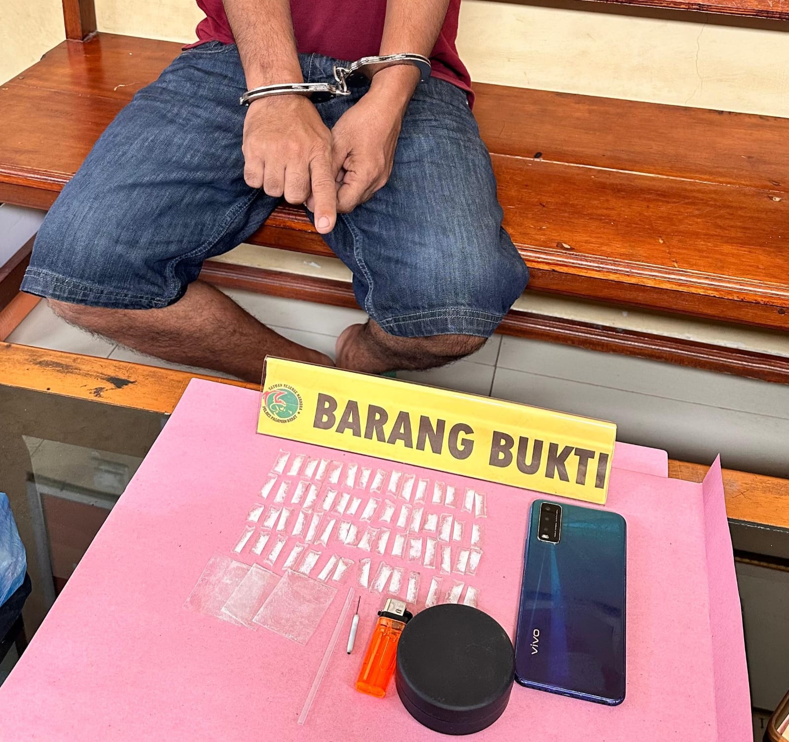 Selanjutnya, petugas langsung melakukan penggrebekan dan berhasil mengamankan pelaku, kemudian dilakukan penggeledahan yang disaksikan oleh sejumlah masyarakat setempat, ditemukan sebanyak 60 paket kecil diduga narkotika jenis sabu-sabu dibungkus dengan plastik warna bening yang disimpan dalam kotak warna hitam.