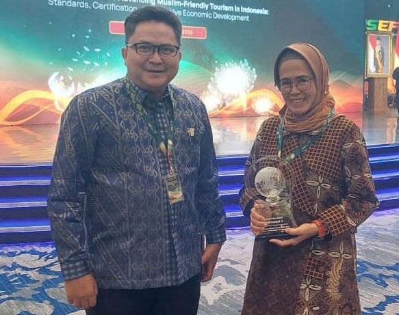 Penghargaan tersebut diterima langsung oleh Kepala Dinas Pariwisata Provinsi Sumatera Barat Lila Yanwar, didampingi Kepala Perwakilan Bank Indonesia Provinsi Sumatera Barat Mohamad Abdul Majid Ikram, pada perhelatan Indonesia Sharia Economic Festival (ISEF) 2025, yang digelar, di Jiexpo Convention Center, Jakarta, Rabu (9/10/2025).