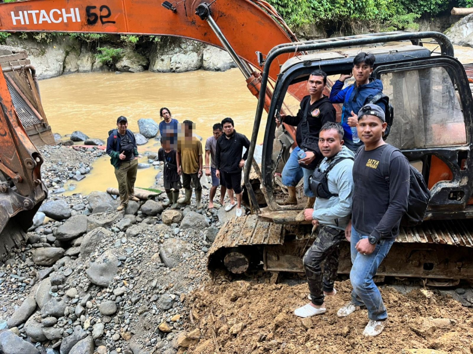 Petugas kemudian melakukan penyisiran di sekitar lokasi dan menemukan satu unit alat berat (ekskavator) merek Hitachi warna oranye yang terparkir di tepi sungai. Alat tersebut diduga digunakan kedua pelaku untuk melakukan penambangan emas ilegal.