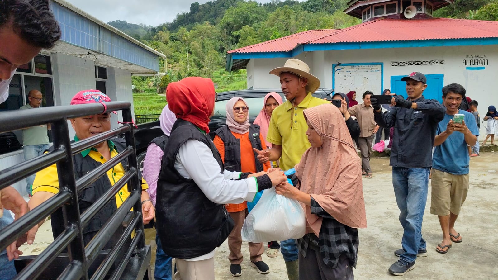 Lokasi pertama berada di Jorong Kuok Tigo Koto, Nagari Matua Mudiak, kawasan pinggir Danau Maninjau. Di lokasi pengungsian, tim menyerahkan sekitar 100 paket sembako untuk 40 kepala keluarga terdampak. Bantuan diserahkan secara simbolis oleh Prof Rudi Febrianmansyah dan diterima Wali Jorong Romi Dt Marajo.