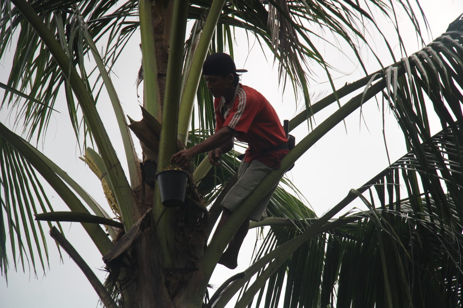 Salah seorang warga, Ismanto, setiap hari harus menempuh perjalanan menuju kebun kelapa untuk mencari nira. Aktivitas tersebut telah dia jalani sejak lama karena sebagian besar warga di desanya bekerja sebagai penderes.