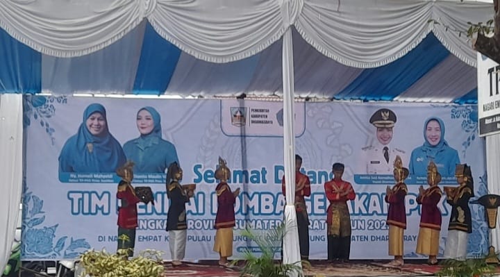 Bupati Dharmasraya Annisa Suci Ramadhani menyambut langsung tim penilai bersama Ketua TP PKK Dharmasraya Yosta Defina, Ketua Dekranasda Rafnelly Rafki Marlon, Kepala Dinas PMD, Hasto Kuncoro, dan sejumlah pejabat daerah.