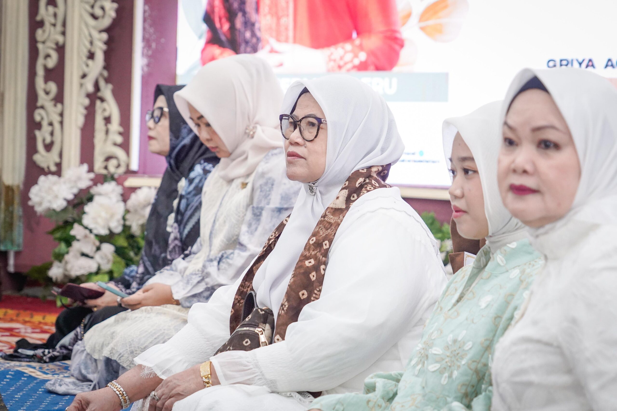 Tim Penggerak PKK Kabupaten Musi Banyuasin menghadiri pengajian rutin bulanan yang dirangkaikan dengan Halal Bihalal TP PKK se-Sumatera Selatan, di Griya Agung, Senin (13/4/2026).