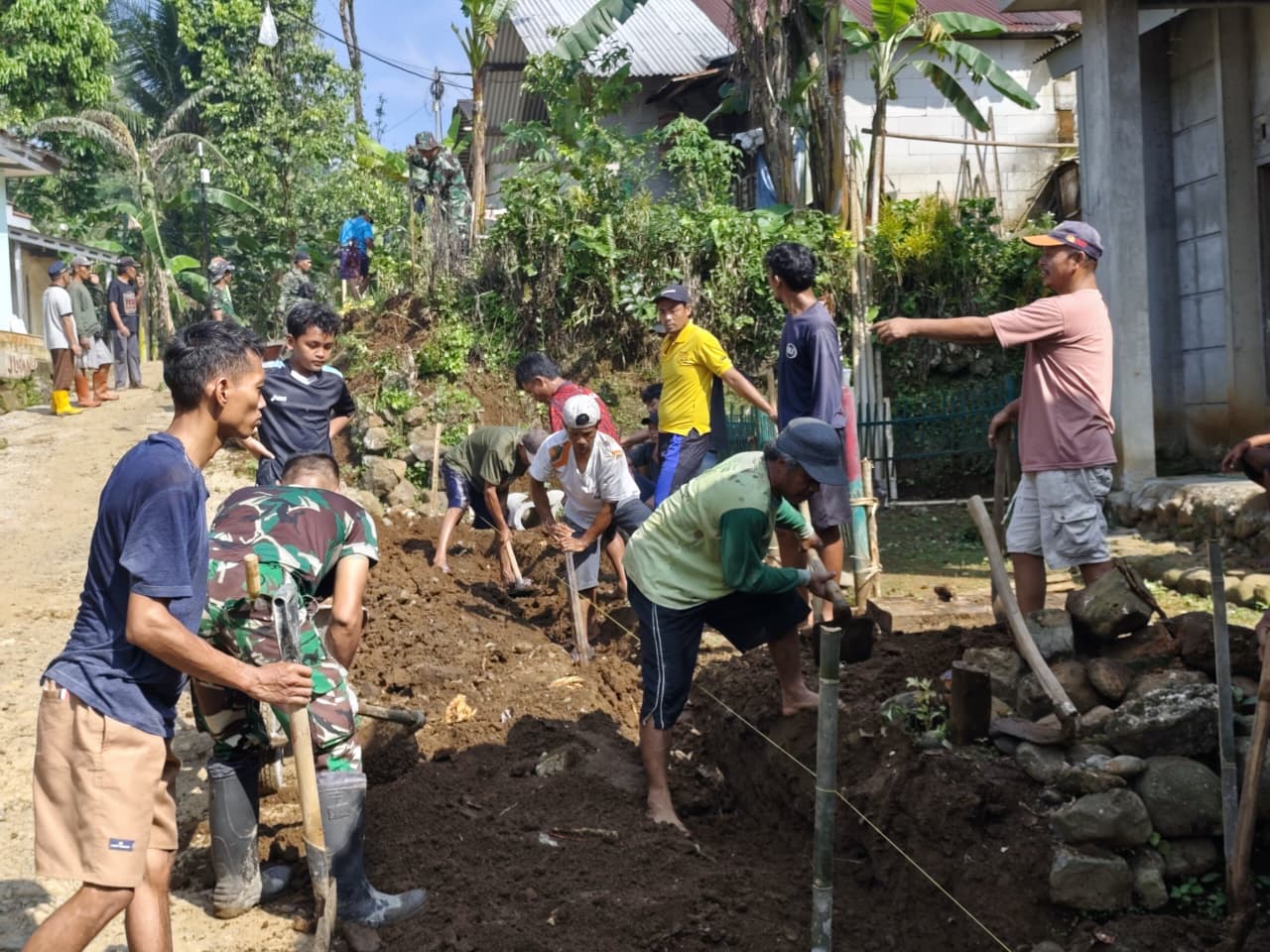 Selain fokus pada pembangunan fisik, keterlibatan warga dari berbagai kalangan menjadi pemandangan yang menonjol di lokasi kegiatan.