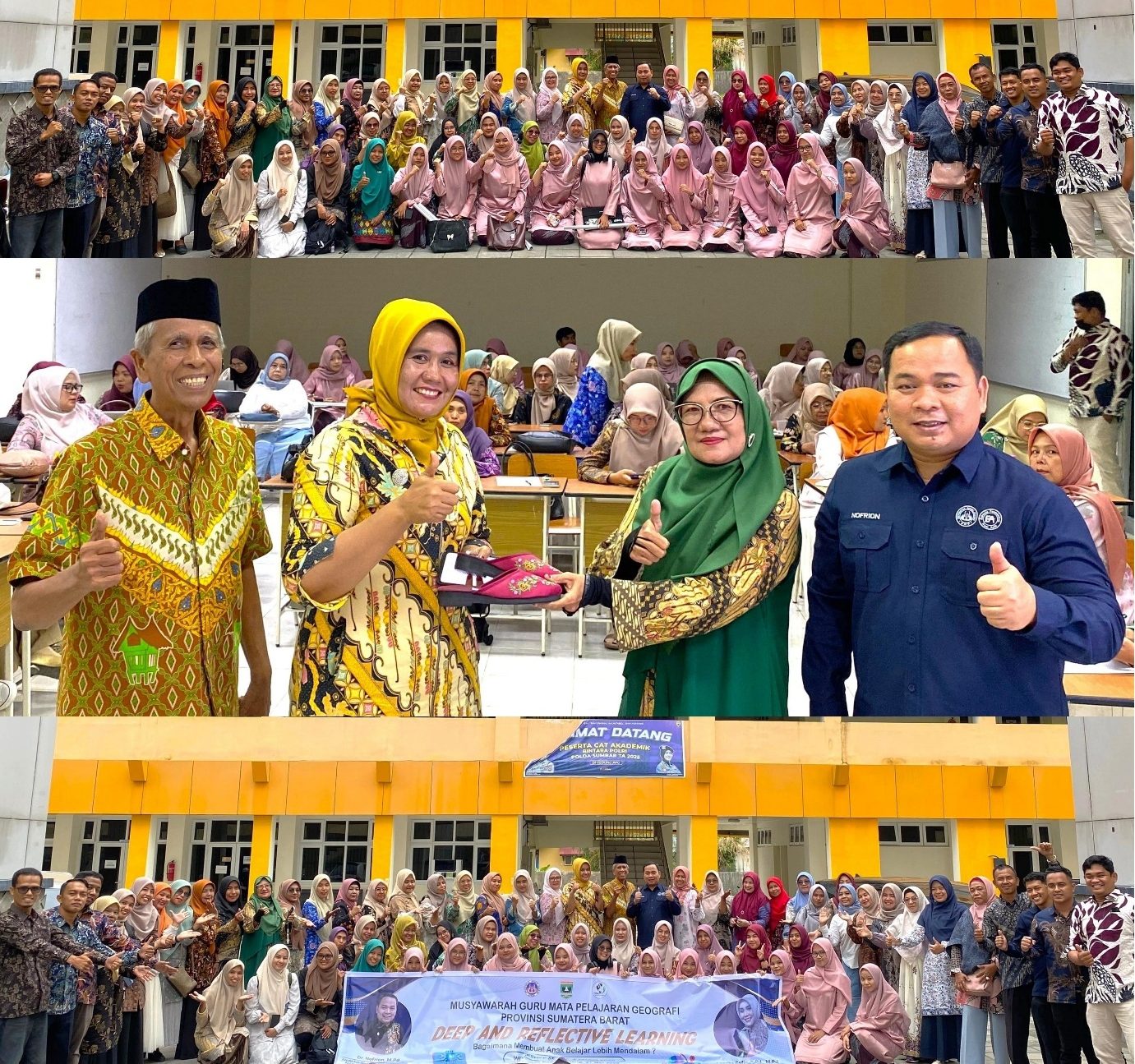 Kegiatan perdana dilaksanakan pada 31 Mei 2025 di Ruang Inovasi Pembelajaran UNP dan diikuti 62 guru Geografi dari berbagai daerah di Sumatra Barat serta 30 mahasiswa yang sedang mengikuti perkuliahan Micro Teaching semester Januari–Juni 2025. Kolaborasi antara dosen, guru, dan mahasiswa calon guru ini membahas kesiapan menghadapi pembelajaran mendalam (deep learning), pengembangan media dan sumber belajar, serta implementasi pembelajaran reflektif (reflective learning).