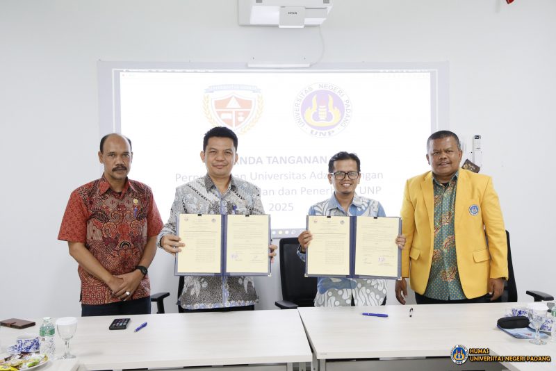 Universitas Negeri Padang memperkuat peran perpustakaan sebagai pusat literasi akademik melalui penandatanganan perjanjian kerja sama dengan Universitas Adzkia, Rabu (21/5). Kolaborasi ini menegaskan komitmen UNP sebagai pelopor pengelolaan perpustakaan modern, sekaligus memperluas dampak keilmuan bagi institusi pendidikan di Sumatera Barat.