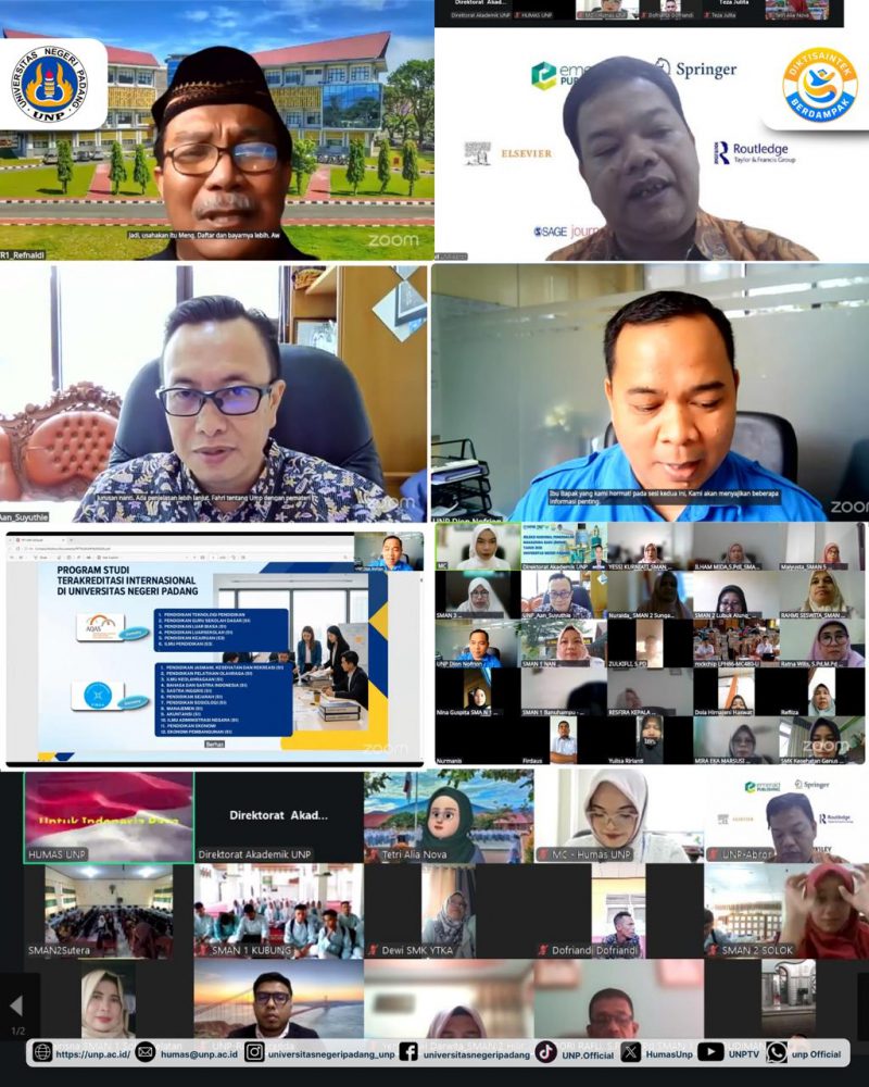 Universitas Negeri Padang (UNP) menggelar sosialisasi Seleksi Nasional Penerimaan Mahasiswa Baru (SNPMB) Tahun 2026 secara daring melalui Zoom Meeting, Rabu–Kamis (1–2/4/2026).