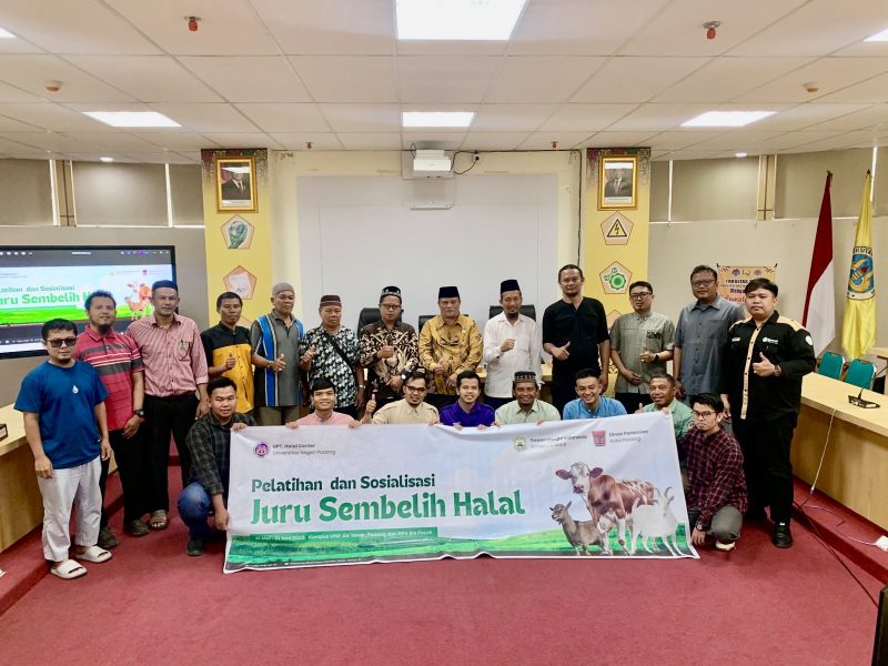 Menjelang Hari Raya Idul Adha 1446 H, UPT Halal Center Universitas Negeri Padang bekerja sama dengan Dewan Pimpinan Wilayah Dewan Masjid Indonesia Sumatera Barat menyelenggarakan sosialisasi dan pelatihan juru sembelih halal dan penanganan hewan kurban yang Aman, Sehat, Utuh, dan Halal (ASUH).