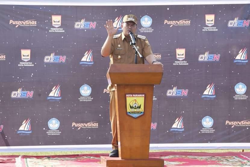 Wali Kota Pariaman Yota Balad secara resmi membuka Ajang Talenta Olimpiade Olahraga Siswa Nasional (O2SN) dan Gala Siswa Indonesia (GSI) Tingkat Kota Pariaman Tahun 2025, di Lapangan Sepakbola AMS Pauh Timur pada Senin (16/6/2025) pagi.